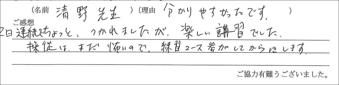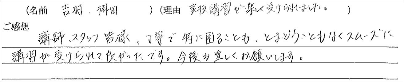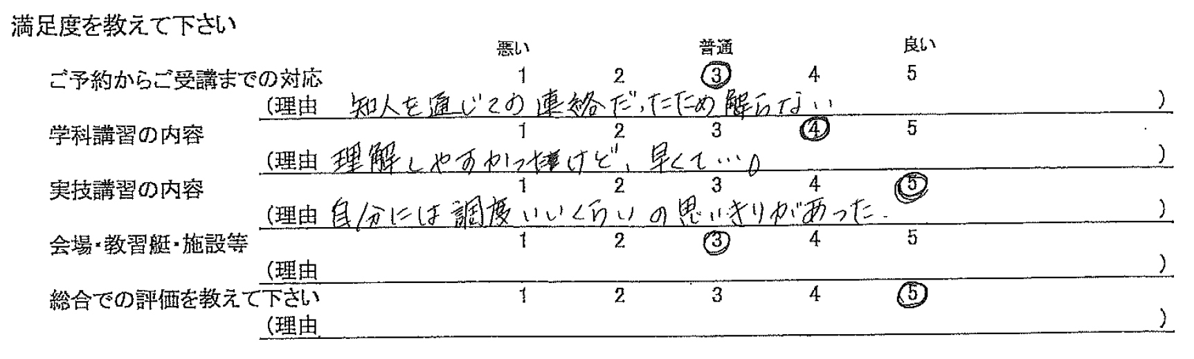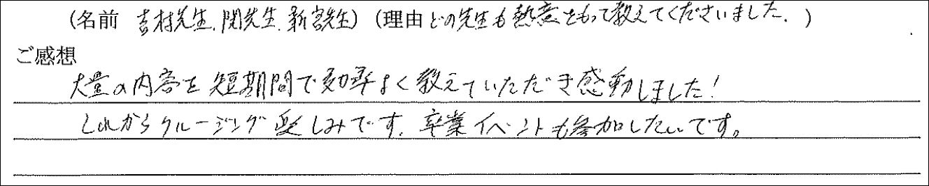 ★ 全国のマリンライセンスロイヤルで受講されてお客様の声をランダムで掲載させて頂きます ★