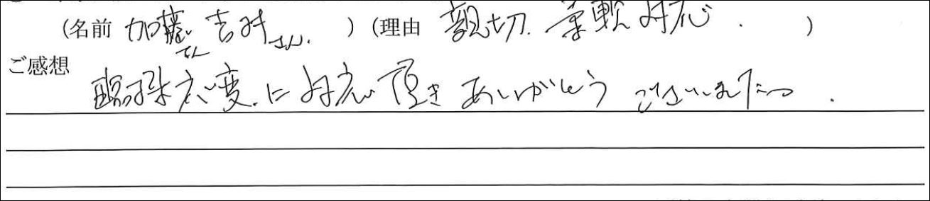 2級船舶免許取得おめでとうございます。ご評価で「会場が近い」「料金」「営業対応」にも高評価を頂き感謝しております。初めてお会いしたのは「かめや釣具店」今後は船舶免許を有効に活用してもっともっと大きな大物を釣りにでかけましょう! |